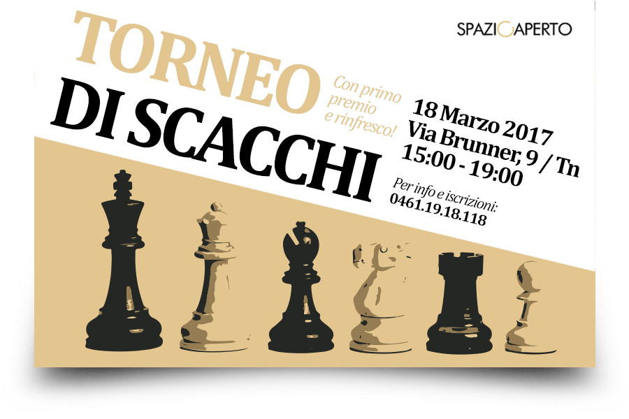 Per tutti gli appassionati, torna a Spazio Aperto l'appuntamento con gli scacchi! Vi aspettiamo Sabato 18 Marzo 2017, in via Brunner 9, per una spfida...all'ultimo re!