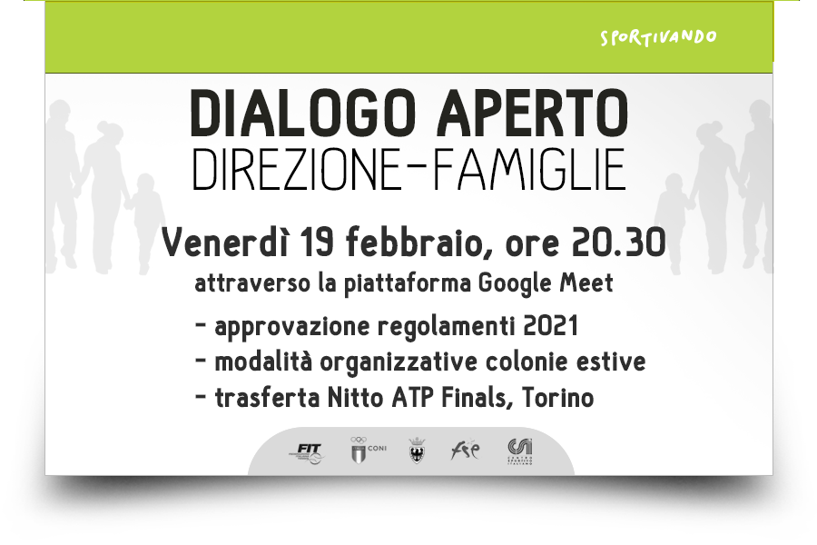 Venerdi' 19 febbraio 2021 alle ore 20.30, tramite la piattaforma Google Meet, si terra' un dialogo dedicato a tutte le famiglie vicine all'associazione. Sara' un'occasione per progettare insieme le prossime Colonie Estive e affrontare i temi che stanno piu' a cuore ai nostri associati; si parlera' d ...Guarda tutto il testo